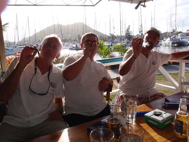 Let the photos do the talking, Arrival day 11th Dec 2009, The crew of Tioram, The arrival party, Havana cigars, Rum punches, First night after arrival Alisdair ‘worse for wear’ sleeps on the coffee table, More parties in the following days, The boys cant get enough sailing-hobbycat in the bay, Any laundry channel 16 !! the laundry boat, A sail to the Pitons and night on a buoy, The fabulous ARC party as the ARC ends……