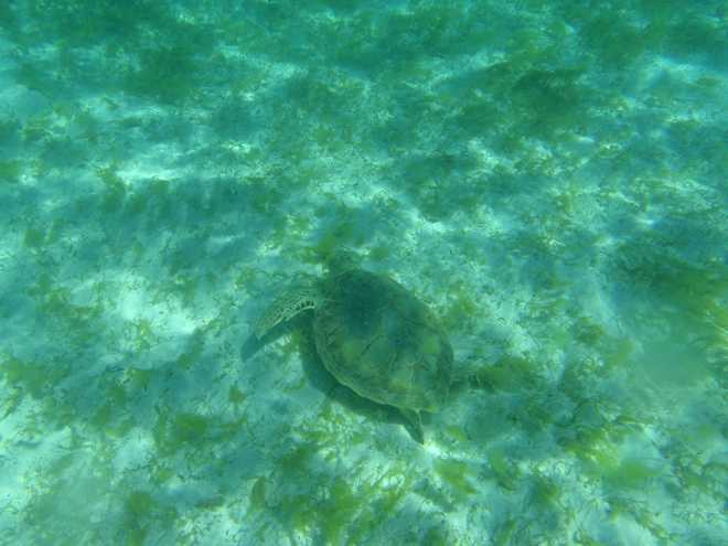 The sea is a crystal colour we have never seen before, with incredible clarity. We swam around the boat and off a beach where we saw 4 Hawksbill turtles grazing on the weed on the sea bed.