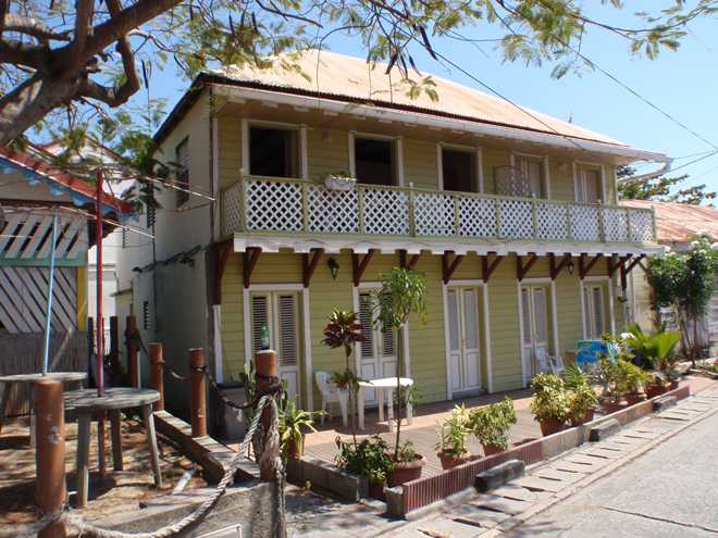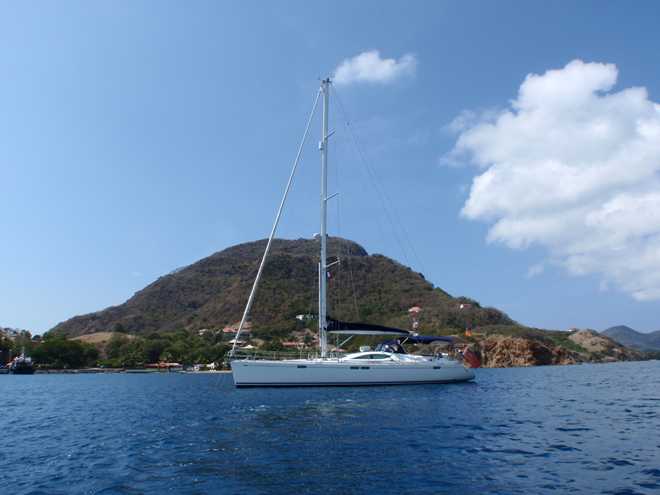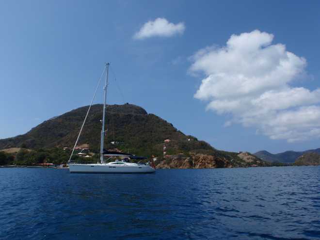 The bay is a wonderful anchorage, lovely clear water and very protected from the predominant Easterly wind. The town is chocolate box with nice low level houses, shops and cafes but sadly it has a large influx of tourists each day via ferries from Guadeloupe. The small high street is full of tourist shops and very expensive bars, restaurants, almost with a manufactured Disney feel.