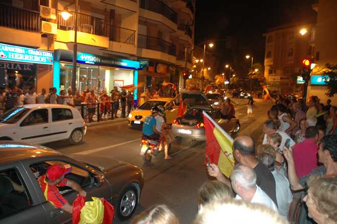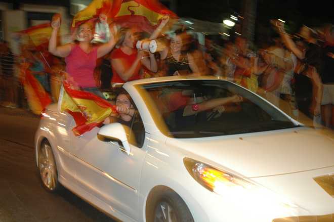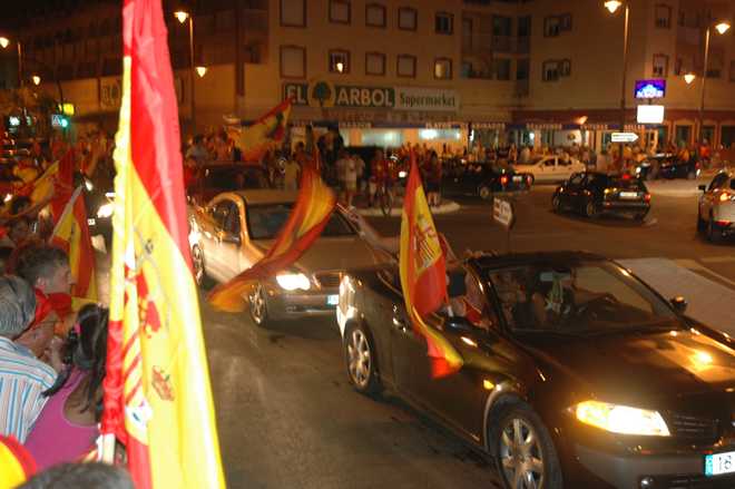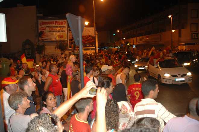 You can imagine the atmosphere when Spain scored a goal—cheers, hooters and explosive firework bangs, set off from rooftops.