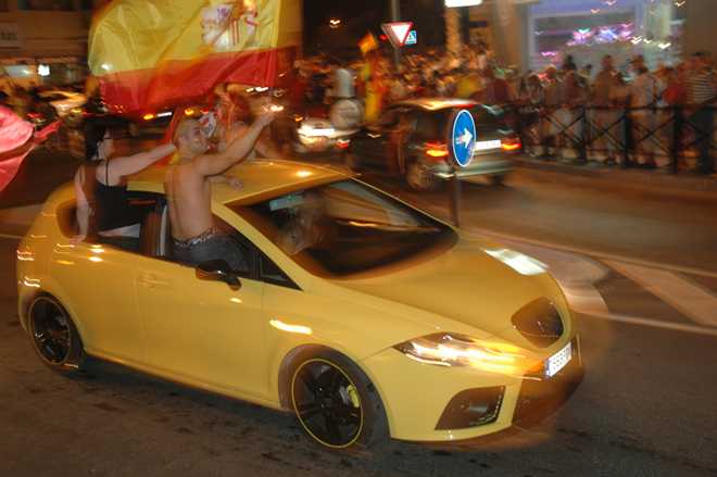 The tension and excitement was electric with all the unseen voices and hooters screaming around the town and into the empty public spaces. We spent the evening in a restaurant with 4 televisions and all local Spanish people.It was great, only made better by the cup being won by Spain.