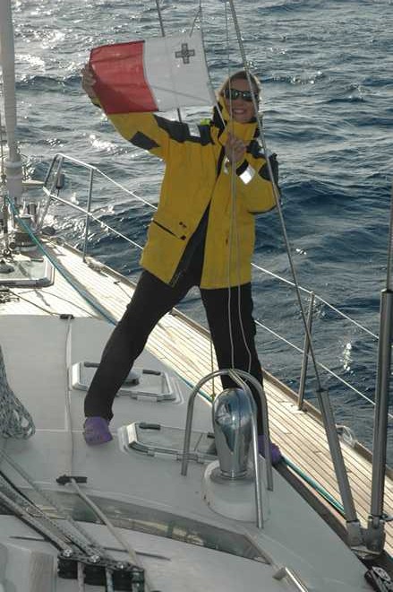 We set off at 14.00 hrs on 14th Oct with 16 to 20 knots true wind, a lumpy cross sea but we were on our way. We made great progress overnight and in increased wind strength we had to take our mainsail down and just run on the Genoa ( forward sail ) to slow down as we wanted to arrive in Malta in day light.