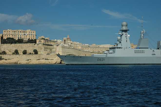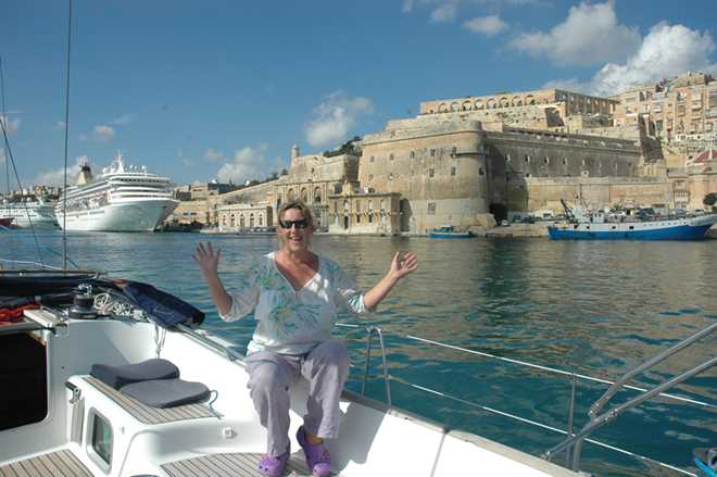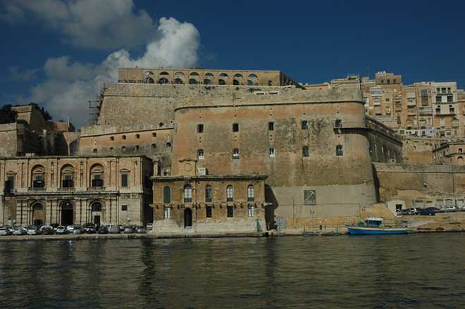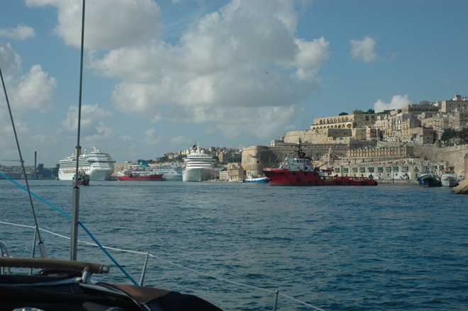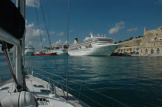 At 12 miles out, all ships are required to call Valletta Port control for permission to enter. We felt quite insignificant surrounded by large tankers, one carrying part of an oil rig platform and a French naval warship.