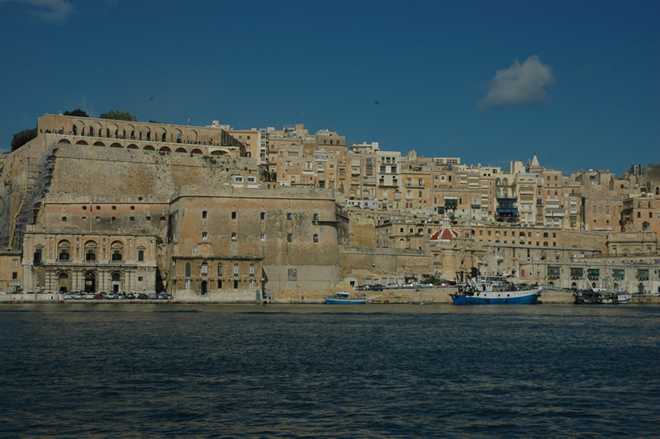 My Mom and Dad have spent many happy holidays wintering in Malta. Tony and I joined them for short one week breaks on two or three occasions. One of the great treats we had was to sit cross-legged on the 3 meter thick fortress walls of the Upper Barracas, Valletta approximately 250ft above the water. It is a fabulous vantage point which overlooks the Grand Harbour, Valletta. The spectacle opposite is The Three cities and the many historical buildings are quite something. If you are lucky enough to see it in low sunlight, the local ochre stone buildings are illuminated, almost golden.