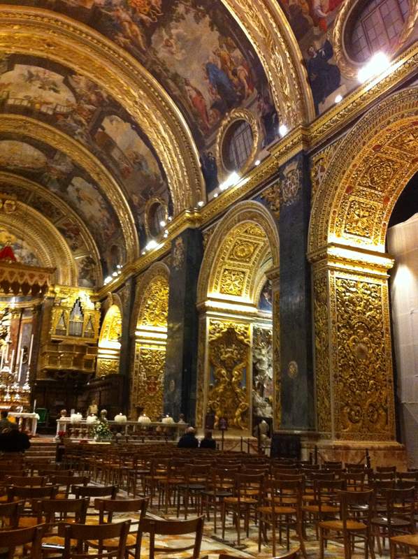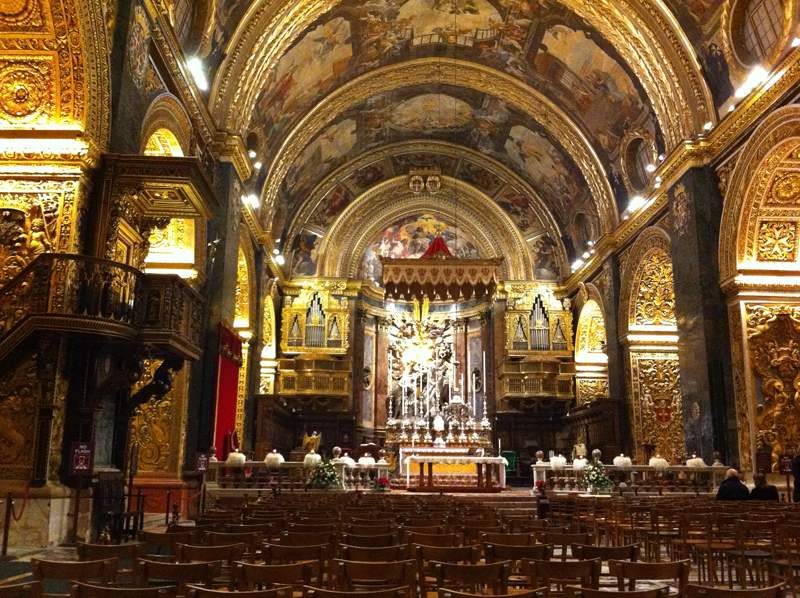 The Cathedral completed in 1578, lost its bell tower spires, but otherwise remained intact and is the highlight of any visit to Valletta. The simple limestone exterior acts like a tardis to its opulent Baroque interior. Each Grand Master added to the grandeur and decoration of the church alongside each new knight admitted to the order who was obligated to provide a gift.