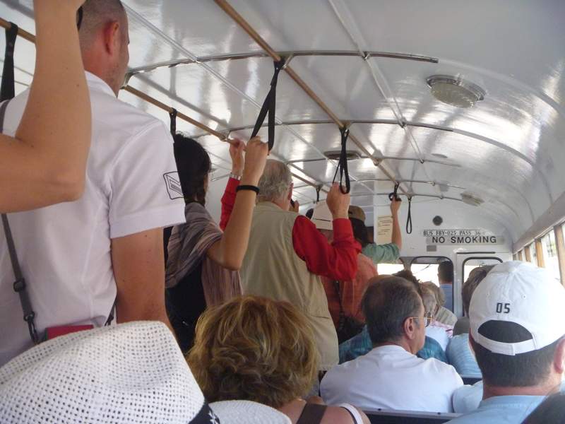 Empty vintage bus—FULL bus, can you believe it and no one left on the road side !!