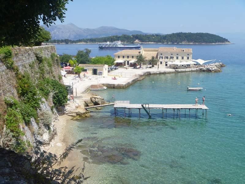 If you arrive from the sea the fort built on the natural outcrop of rock is imposing and impressive. Its called the Palaio Frourio, originally 12 th century Byzantine castle, later developed by the Venetians and British.