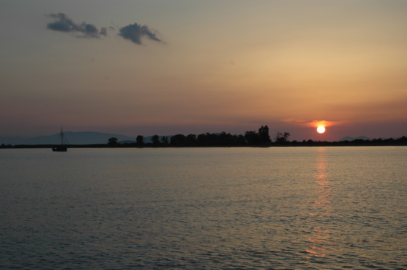 We left Spartakhori on a hot, windless morning unable to sail and motored south east to the sheltered bay of Ormos Oxia on the Greek mainland. We are heading for the the Gulf of Patras which leads east to the Gulf of Corinth to take us to the Corinthian canal.