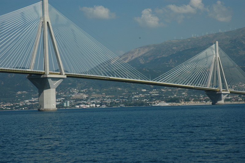 The bridge which spans the narrow one mile channel between Andirrion and Rion was built in 2004 and is the longest cable-stayed bridge in the world at 2,252m and an air height of 25-45m.