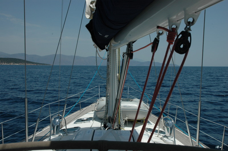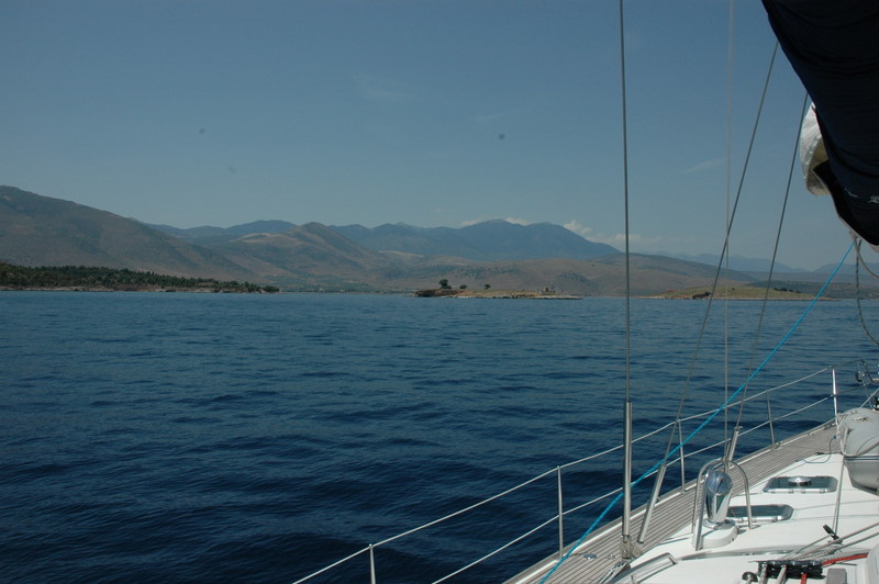We motored for about 8 miles and with a slight change in wind angle we managed some long zigzag tacks eastwards. We sailed past a lovely tiny island on the North of the gulf called Trizonia, the only inhabited island in the gulfs, very pretty little place from the sea.