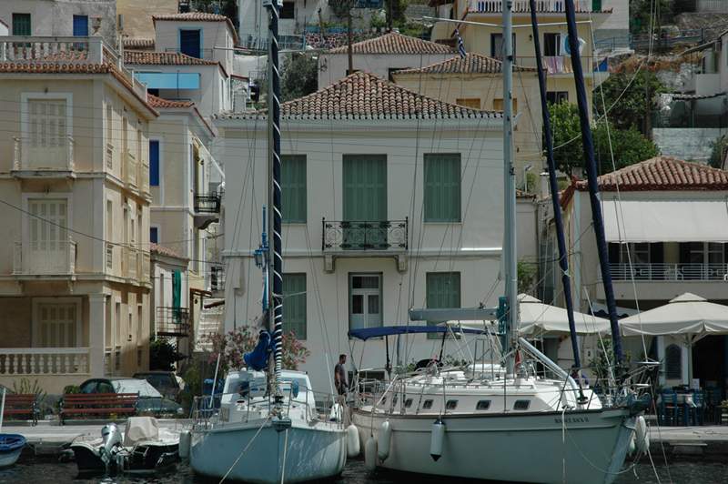 It is a very photogenic place, especially nice from the water. The only disadvantage is the large ferries coming in from the islands and Athens kick up a fair old surge and this coupled with increased wind leads to fun and games on the quay. We saw a large motor yacht have a jet ski bounce off its transom, left dangling on a pasarelle crane line— then wedged between the quay and the surging motor yacht. They got it back on-board but sadly not without damage to both the jet ski and the boat.