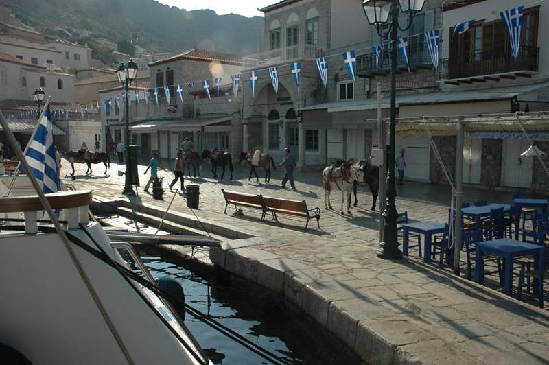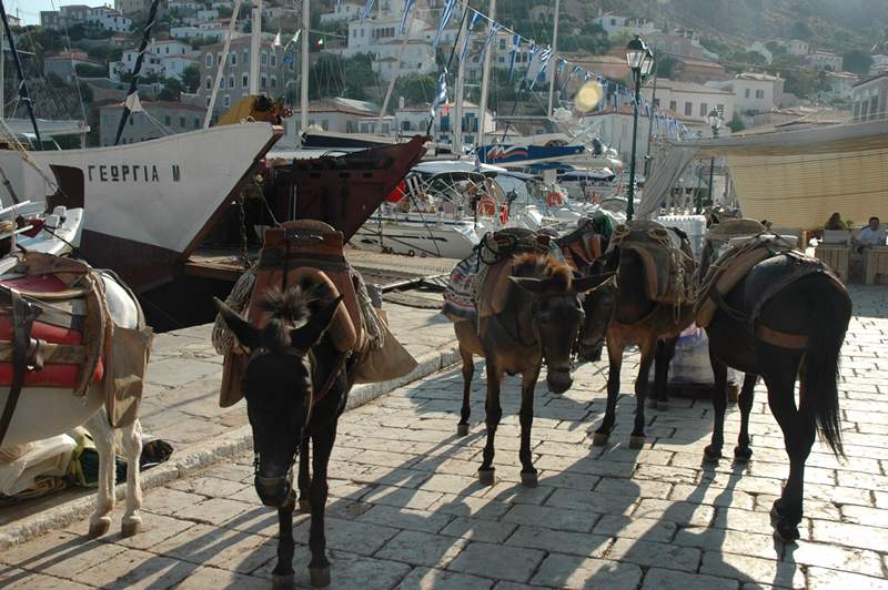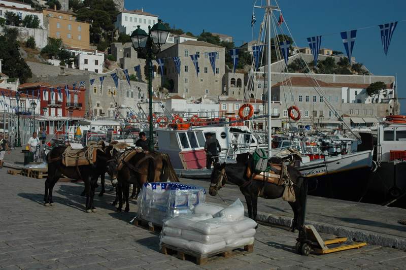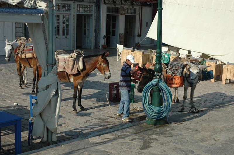 Visitors and their suitcases are led up the steep streets to their accommodation. Mules arrive on the waterfront with food, bottles, goods etc. hanging off their strong saddles supplying the daily consumption in the immaculate, trendy restaurants etc..