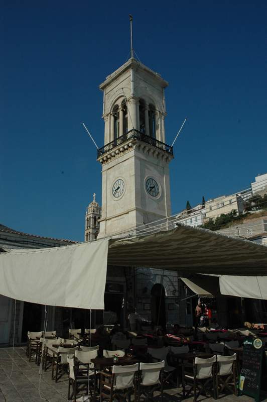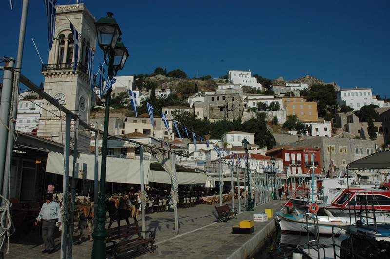 The town from the sea is really spectacular— often the best view of these lovely places. As we approached we could see lovely historical houses obviously restored into stunning homes and holiday villas. It is hard to describe the quality of the architecture, originally built by wealthy shipping merchants. Historically, the island was barren and waterless, but prospered when mainland Greeks left the mainland to escape Turkish rule, developing boat building and trade on the island.