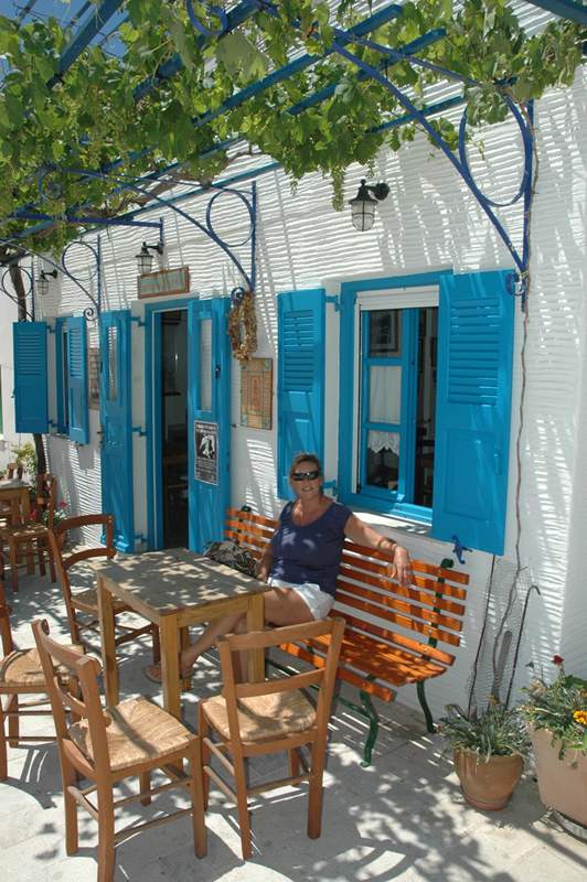 We Scootered around the island, enjoying the coastline and interior in very strong winds. We had 30 knots, Meltemi a couple of days ago whilst safely tucked inside the small harbour. Several charter yachts left it too late to try to leave the outside of the harbour wall where they were anchored stern to. The inevitable crossed anchors happened in 30 knots wind and there was carnage as boats T- boned one another, an outboard ripped off a rail and pretty unpleasant time had by all. Car crash to watch—we helped as much as possible but finally it was a free floating yacht who towed people apart—chains around keels—etc.