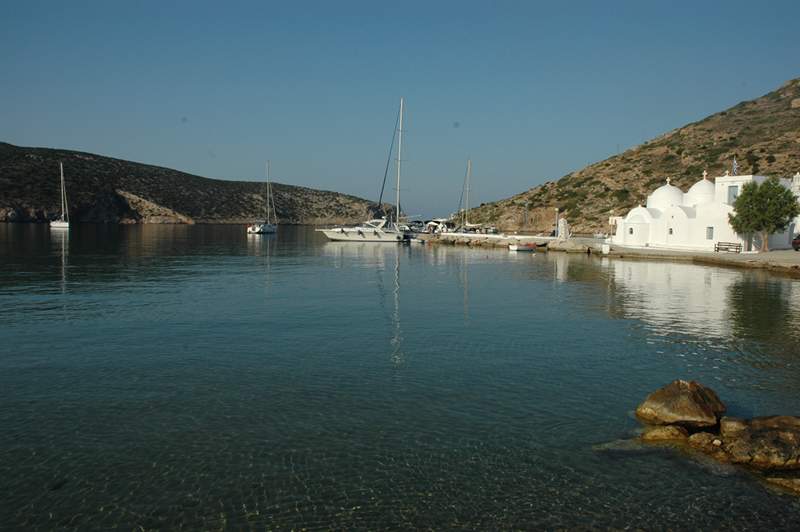 We arrived in Vathy and anchored in the protected bay. Vathy is the archetypal Greek bay with crystal clear water, sandy beach, a scattering of white washed sugar cube houses and a small quay jutting out into the sea with a small church nestled onto it.