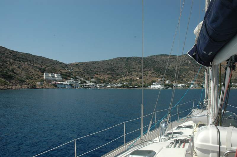 We had a great sail for the first 19 nautical miles in 11-14 knots, a real treat after too much motoring, the wind finally died later and we motored the remaining 9 N miles to the bay of Vathy, Sifnos.