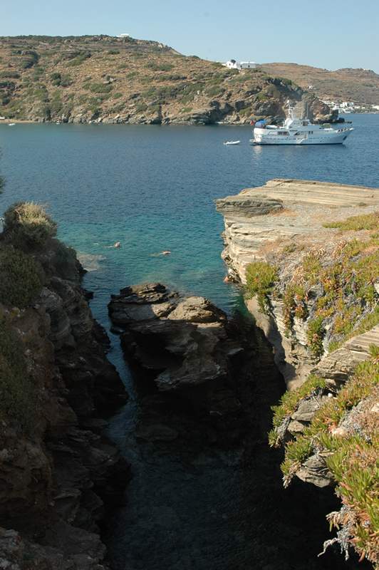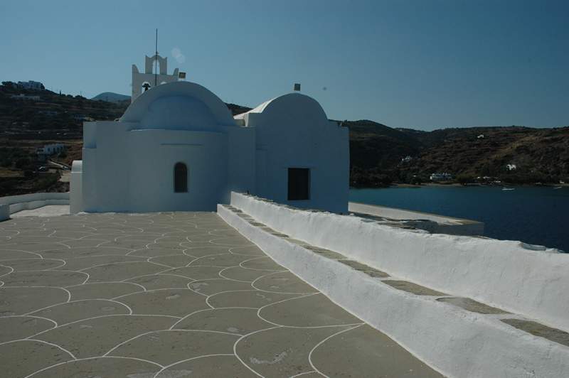 Another gem location is the bay of Faros on the south of the island— and a church on the outcrop of rock at Chryssopigi, ( see photos ).