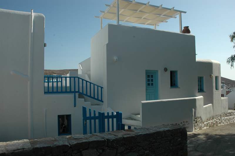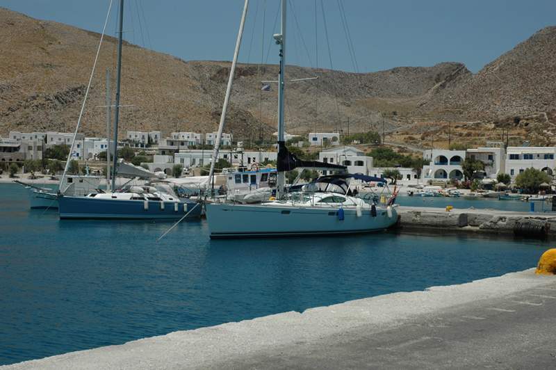 We slipped our lines from the quay of Adamas on the Island of Milos on 5th July and motor sailed the 33 N miles to the tiny Island of Folegandros. As we neared the island we could see Santorini for the first time in the distance—the white Cycladic buildings on the crest of the cliffs looking like a snow capped mountain.