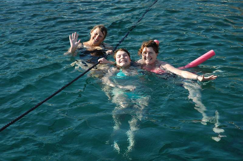 My dear mate Carol has never really enjoyed swimming, and never out of her depth in the sea, she wins a bucket load of gold stars for facing her fears and not only swimming off the boat but also snorkelling for the first time— ‘face your fears, live your dreams’, girl !!