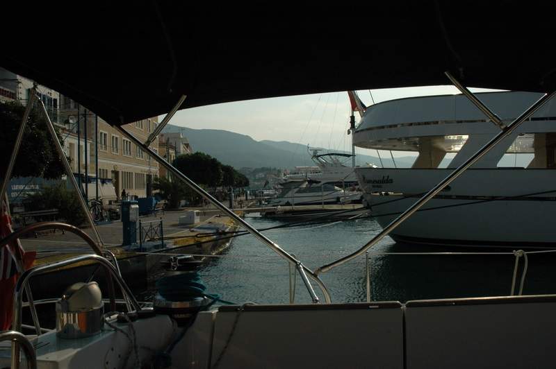 Stern to the quay in Poros