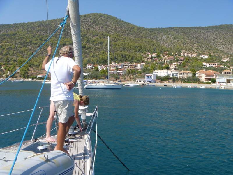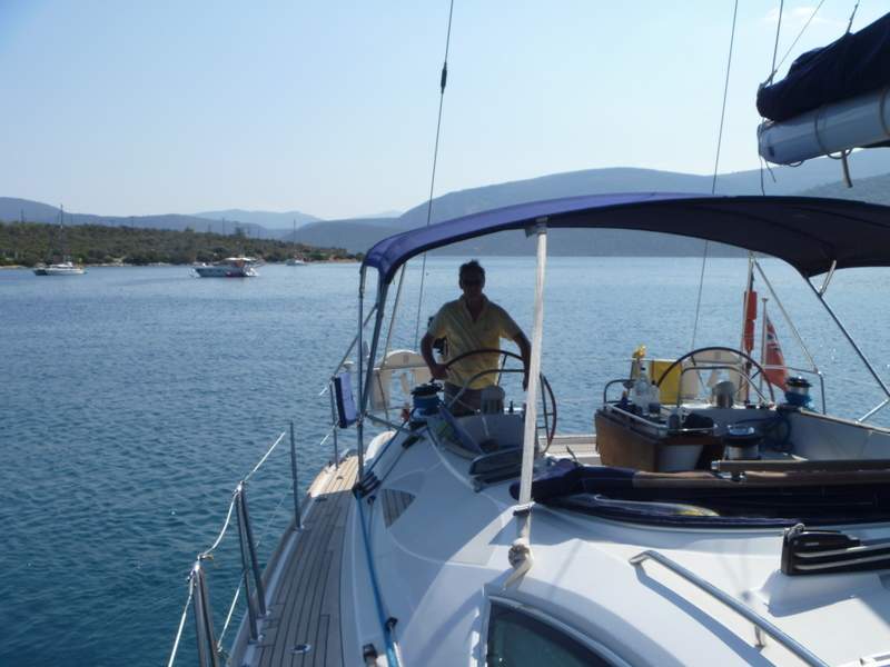 After 39 miles in light 9 knots of wind we anchored in a bay called Kalamaki for the evening and night ready to go through the Corinthian canal on the 5th Sept.