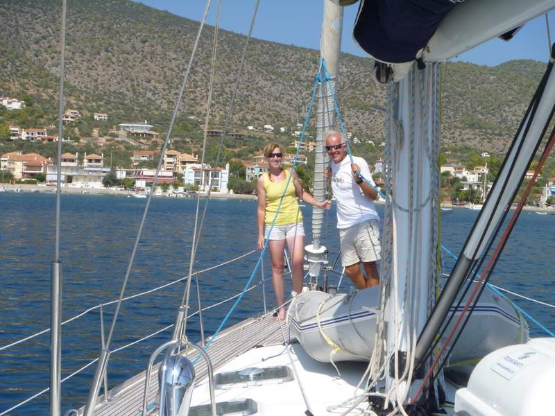 Jackie and Tony lifting anchor