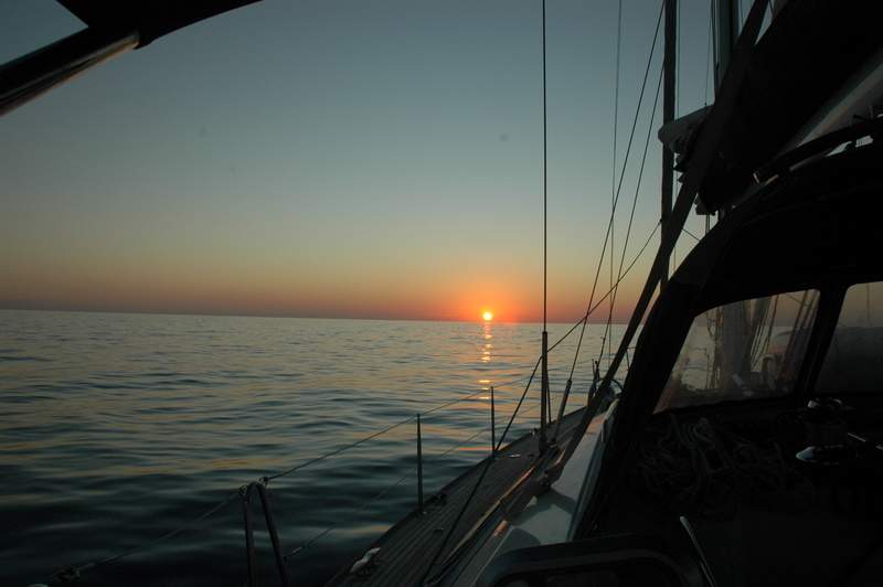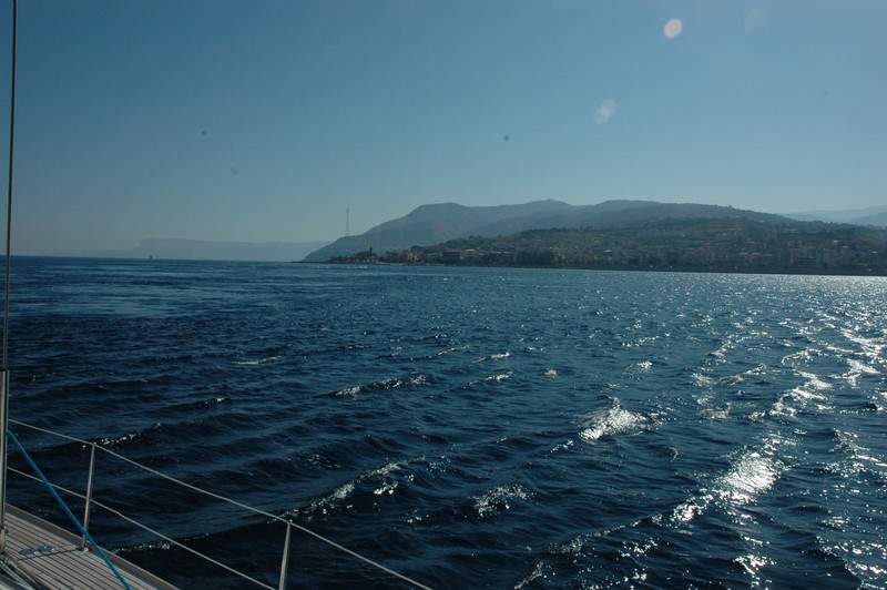 At dawn we were still motoring around the toe of the boot, southern tip of Italy before heading north west into the Straits.