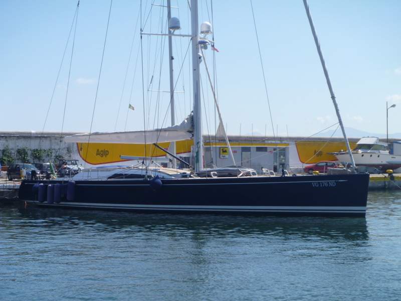 Swan mega yacht——— note the position of the fenders were set for the tiny length of Tioram alongside——— a stunner.