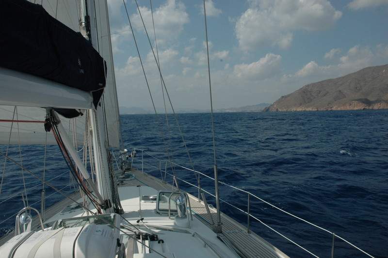 At 15.22 , with 17Tknots of wind, we passed an anchorage we have often enjoyed—-La Azohia—and so entered the bay of Mazarron.
