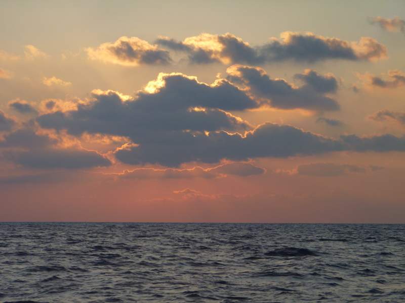 We both stood on the bow watching them play below us, Tioram on auto pilot and the light reducing, the reddening sky moving towards sunset and our position nearing the change of East /West longitude, Greenwich meridian ——- we felt as if the dolphins had come to guide us safely back to the West, to Spain and to the end of another adventure.