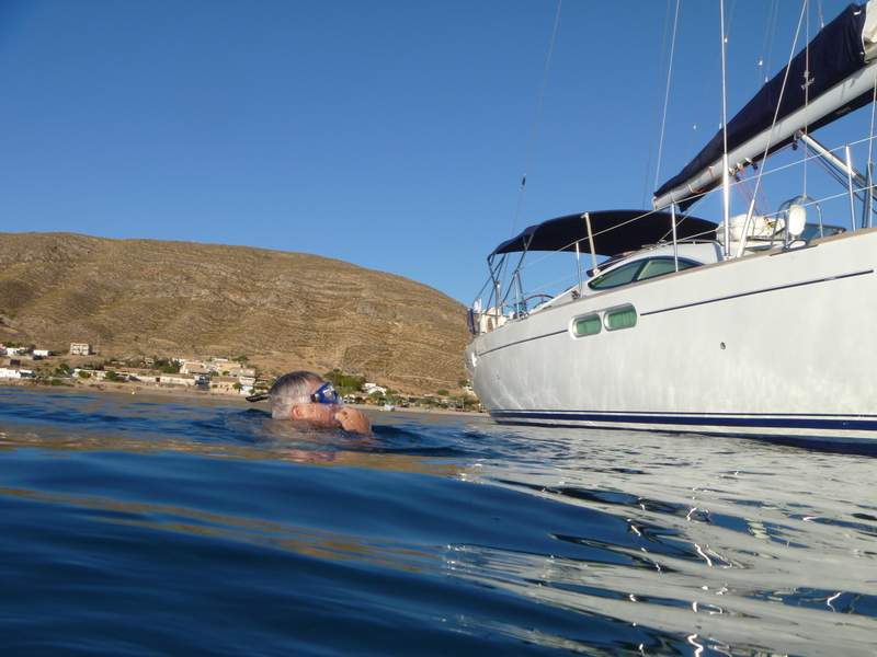 We anchored at 15.30 in La Azohia and enjoyed the lovely hot sun. The water was so incredibly clear and still, allowing us to see the sea bed and set anchor easily in 5 metres.