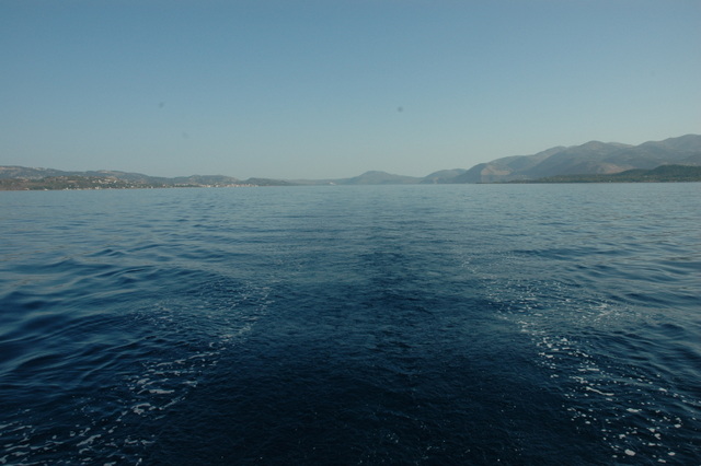 On the morning of 15th July we motored out of the grand bay, Tioram heading north along the east coast of Kefalonia and Edmund on ‘Minka ’heading north on the west coast of Kefalonia, heading for Corfu.