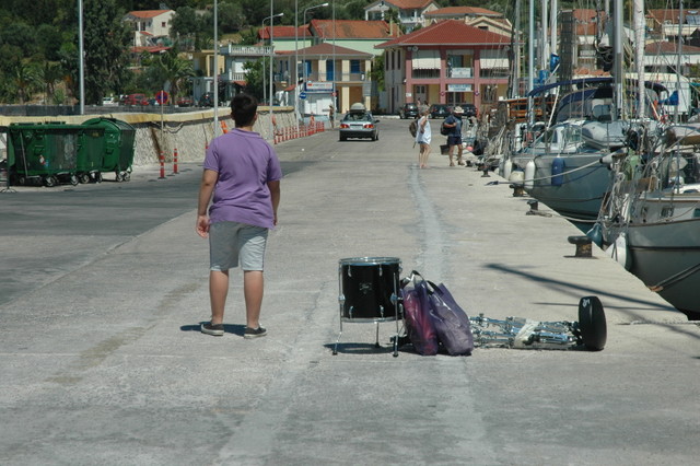 Each time a ferry leaves there are lone parcels left on the quay until someone comes to claim them. Car tyres in plastic wrap, assorted boxes and the best yet, a full drum kit !!—-finally accompanied by a lone child. Later, his Mom drove up to claim him and the drums.