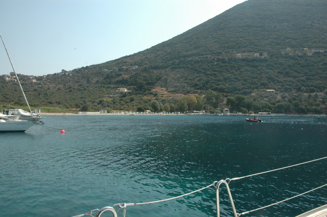 Port Polis is a bay on the west side of Ithaka in the channel between Ithaka and Kefalonia. It is a simple bay, a nice anchorage off the beach or good stern to the rocks.