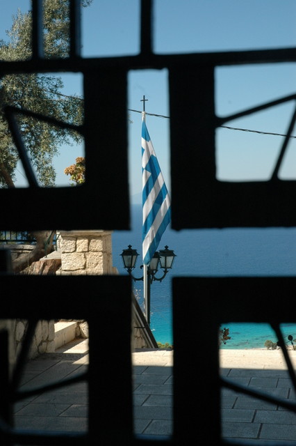 The view from the mountains down to the sea is stunning—-see photos. The ‘Inland sea’ is an area formed between the islands of Levkas, Meganisi, the Onassis Island of Skorpios and the Greek mainland to the north and east. It is a lovely protected sailing area with many places to visit.