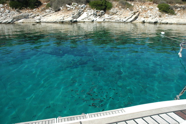Port Atheni again——— the water looks a few centimetres deep on our transum but it is actually 6.1 metres deep at our keel and around 4 metres at our transum——— just pics to say it all.