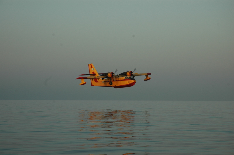 Fireplane against the cliff as we left the bay
