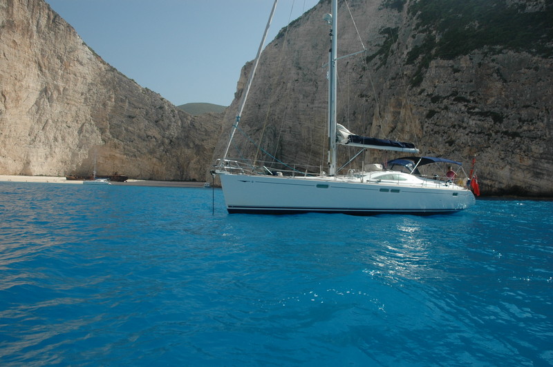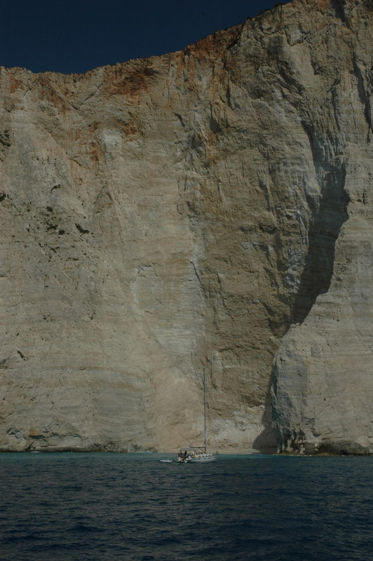 Other yachts dwarfed by the cliffs