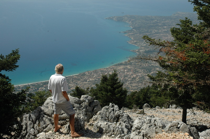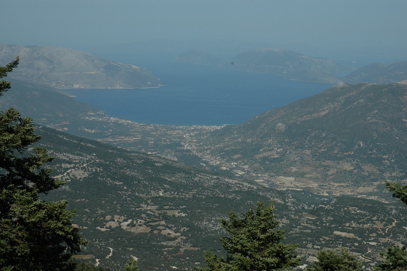 At the top of the mountain there are spectacular views down to the South west coast of Kefalonia and onto Zakinthos to the south, to Sami town to the East and further north east onto the islands of Ithaka and Levkas.The distant photos of the islands are a little hazier than the view we had but you can still enjoy them. However, the photos of the coastline below are clear and tell the story.