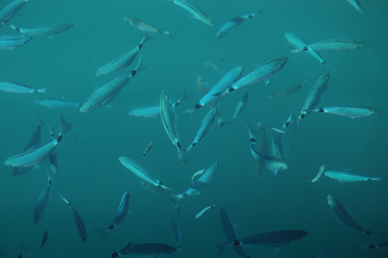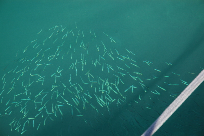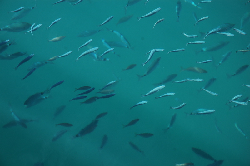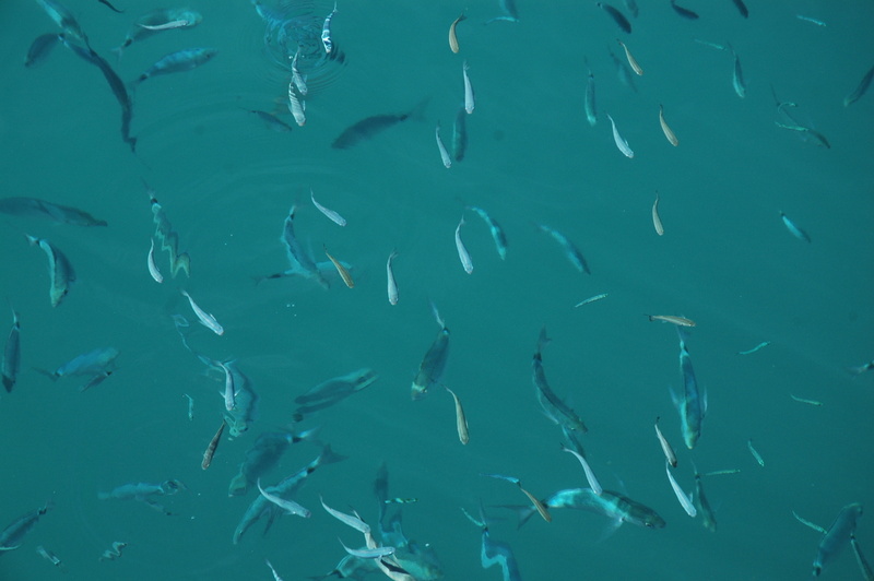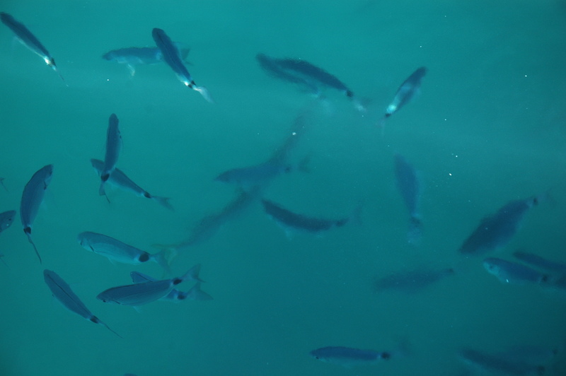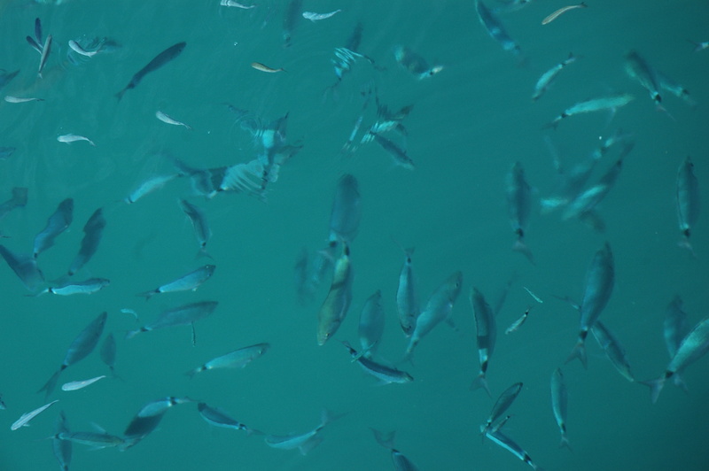 These photos were taken from the side decks looking down into the clear water on the waterfront quay. There are three types of fish which we have seen in most bays.