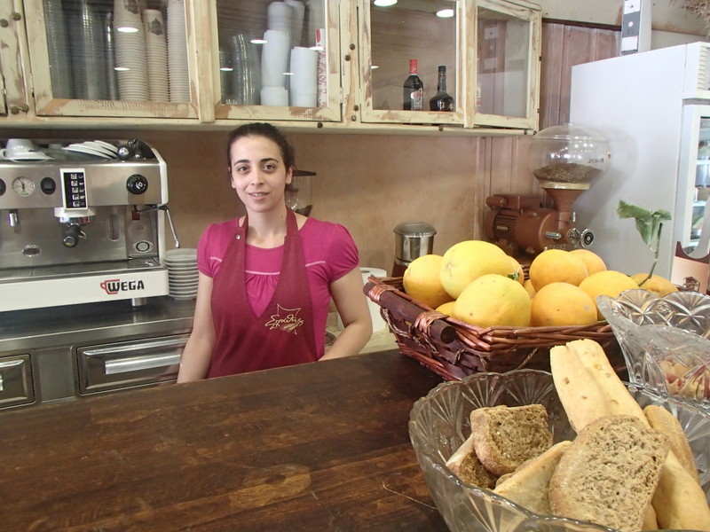 They also make cakes, all types of bread and chocolates… and to go with it…. Freddo Cappuccinos an ice cold espresso coffee prepared then poured on ice with very cold frothed milk poured on top, a cinnamon sprinkle and a straw added…… all served by a lovely young lady called Angelica. Locals sip these for at least an hour. We find them too delicious to wait for the ice to melt.