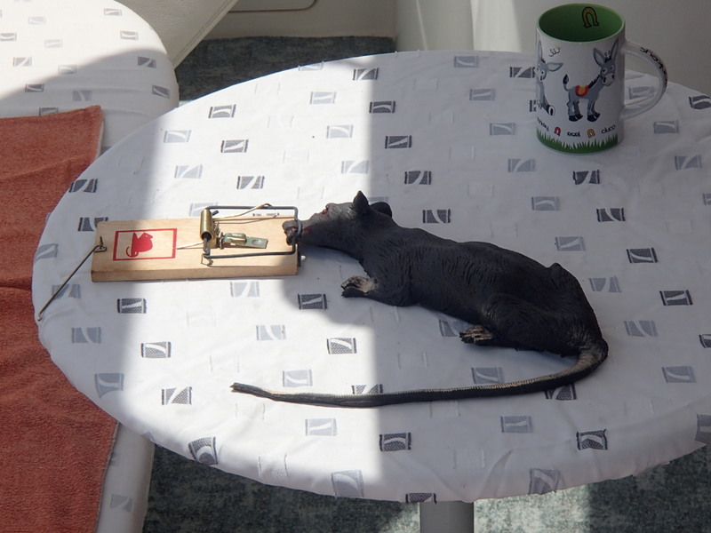 Jurgen said that the rat was at its best when the batteries worked…… apparently with a remote control he could make it writhe and blood to oose out of its mouth…uuuh! Recently he had placed it on the boats foredeck when moored alongside another boat. A fully clothed lady came onto her adjacent deck, saw the rat on Jürgen’s boat and swiftly jumped overboard into the sea. It’s absolutely true… honest.
