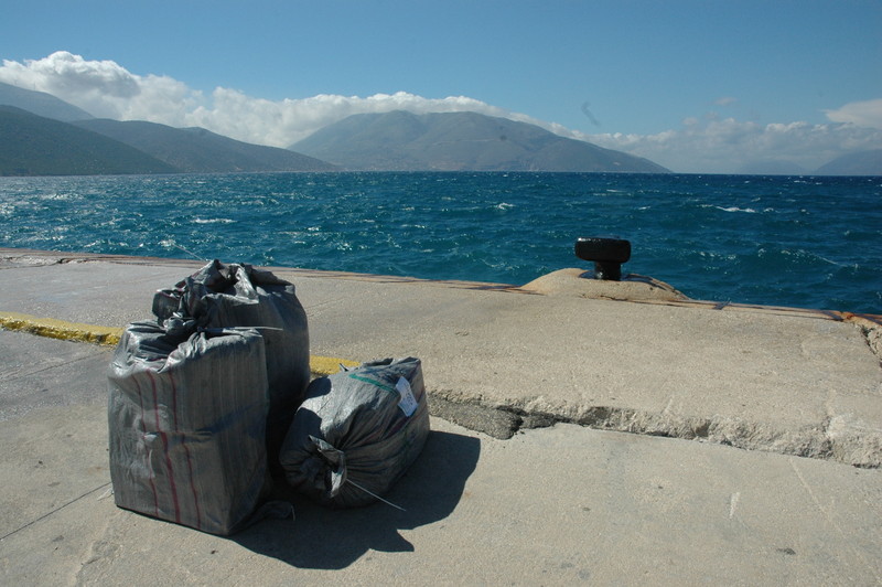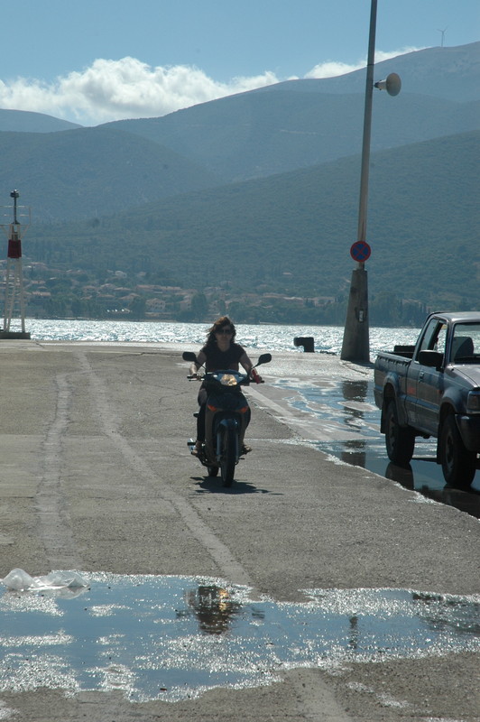 The lone parcels sat there for at least an hour, unattended. I could only hope that the contents were not valuable. The usual flurry of activity started as a ferry was obviously due to arrive. Cars arrived, people gathered, scooters back and forth….. all happening around the stranded wet parcels.