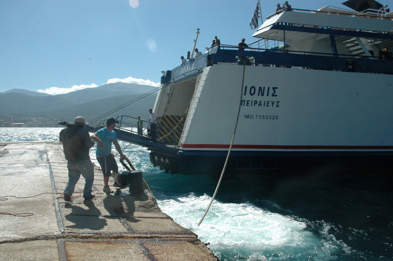 You can always tell when a ferry is expected to arrive as the flurry of parcels arrive and are deposited on the dockside. Passengers, cars and articulated lorries gather. The ferry arrives and its contents seem to explode onto the dock before the waiting people, packages etc. board the ferry. ( see also Ferry Life in Sami blog and photos July 2012 —posted 15th sept 2012).