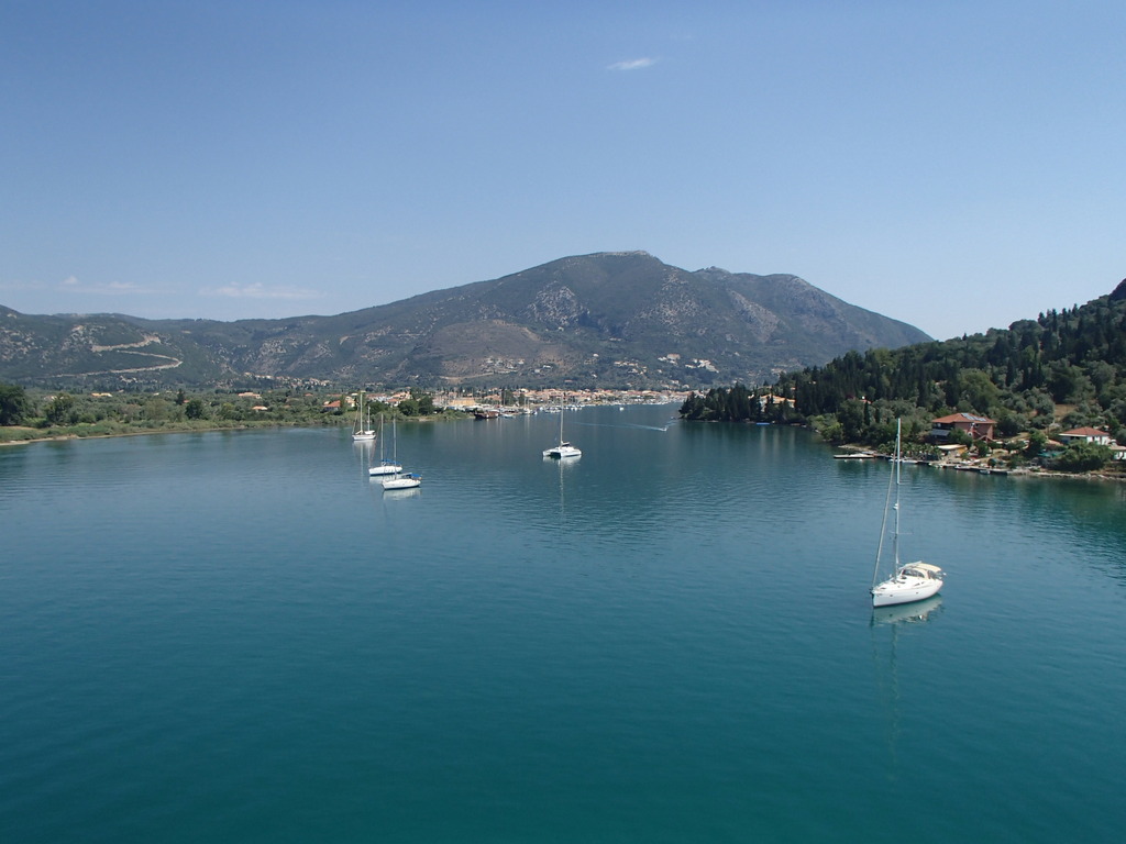 Vlikho ‘pond’ from the top of the mast. Levkas.