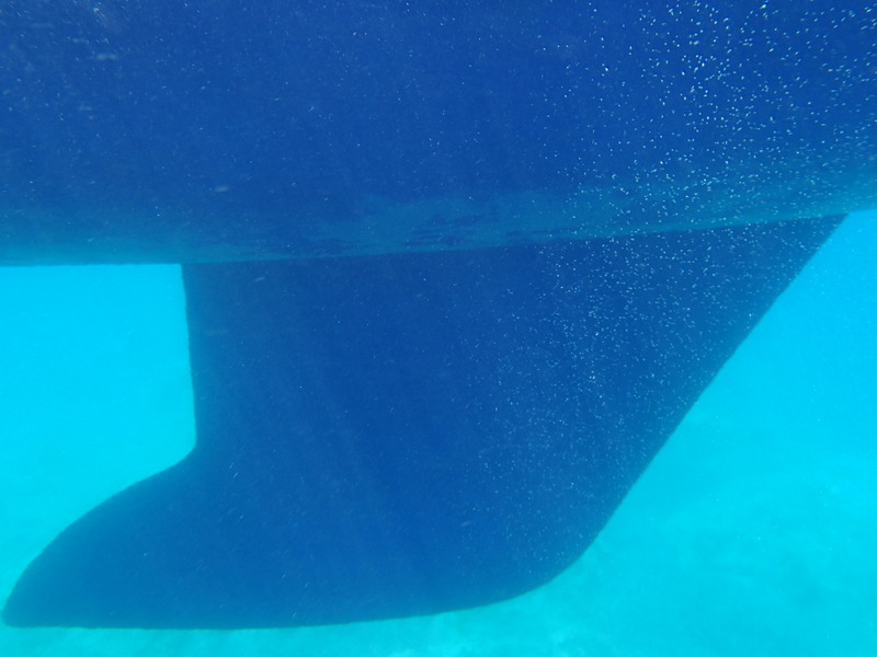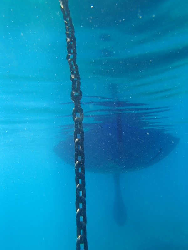 - Underwater photographs of Tiorams boarding ladder, keel, prop and anchor chain…………..yes the water is that colour.