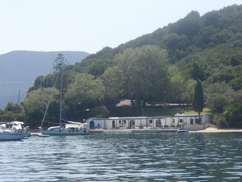 There is a bay on the south shore where Jackie Kennedy Onassis favoured her beach house. It has normally got buoys across the shallows as it has become a tourist attraction for tripper boats from Levkas and visiting yachtsmen to anchor in the bay and view a little piece of history. The mystique of not being able to step ashore added to its interest. There were no fences or need for any, and one security person would sit in a van and watch for anyone attempting to land.