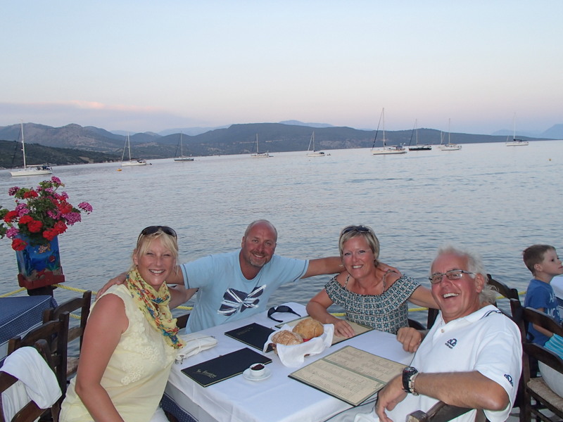 We lifted anchor at 15.00n hrs. and motored north to anchor at Ligia where we enjoyed a lovely evening with our friends Debs and Pete at a nice taverna ashore.