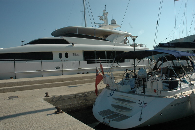 By the afternoon the quay was unusually full of superyachts. A 35 metre motoryacht called Tilon 2 arrived, turned in the small harbour and tried to moor on the remaining blown on hammerhead quay.