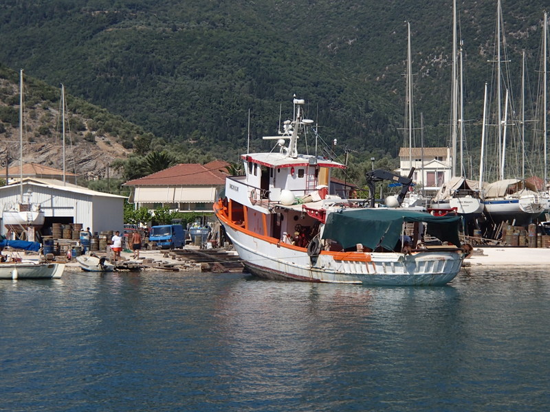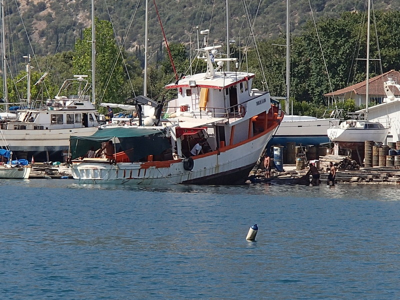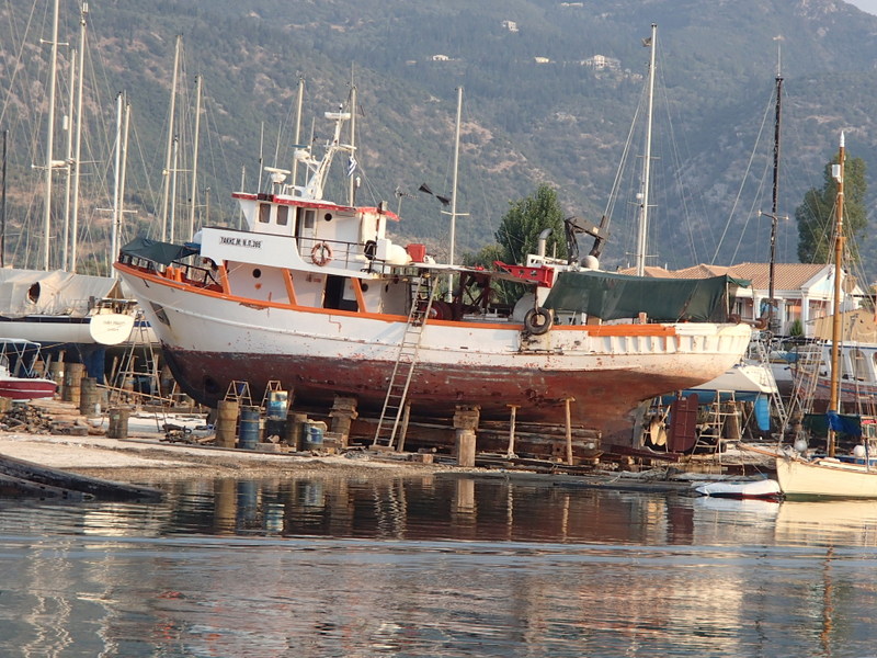 A large fishing boat being lifted or more so ‘dragged’ out of the water by sledge, very precarious, second photo of it chocked on land taken a few days later…………….how do they do it??